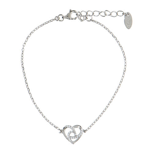 AMEN 925 silver braided heart bracelet.The heart bracelet features a lobster clasp and adjustable circumference from 17.5 to 19.5 cm.This beautiful love bracelet is silver in color and is made of 925 silver, decorated with intertwined heart enriched with white cubic zirconia.The weight of the bracelet is 1.6 grams and is delivered in a velvet case and with a shopper bag. Made in Italy.
