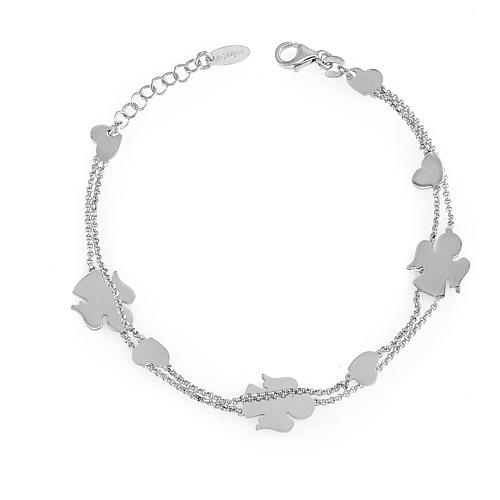 - AMEN Bracelet double chain Angels & Hearts silver 925 Rhodium finish