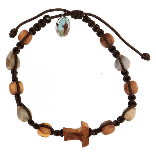 - Bracelet with two-tone beads, Medjugorje tau cross, brown rope Job's Tear
