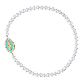 Within the collection, you'll find models with beads, colorful grains, and religious symbols such as crosses or medals, made from lightweight yet durable materials. The elastic pearl bracelet is one of the most popular for its elegance and simplicity, often chosen as a small spiritual gift or to be worn daily as a sign of faith.