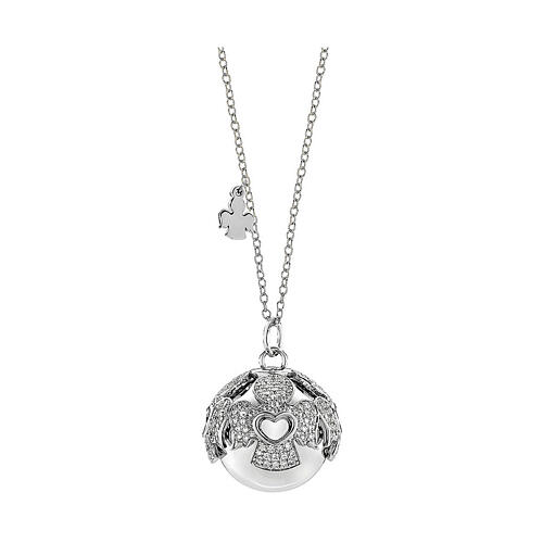 Amen Angel Caller Necklace Rhodium-Plated Steel White Zircons Charm 95 cm