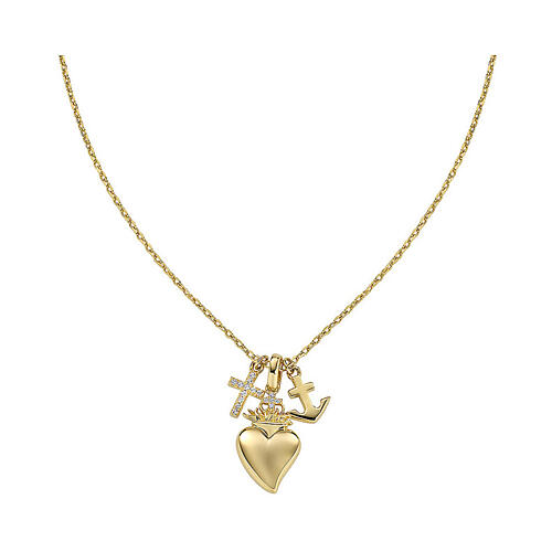 Amen 925 silver gold-plated necklace with heart and cross white zircons charms