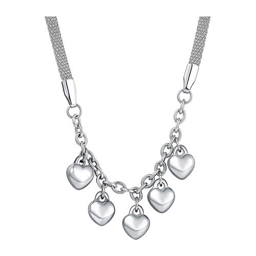 - Stainless Steel Mesh Necklace with 5 Heart Charms