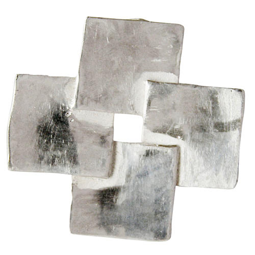 Cross shaped pendant in contemporary style, made with lost-wax casting technique and with a natural satin shiny finish. This jewel weighs 0,1 oz.