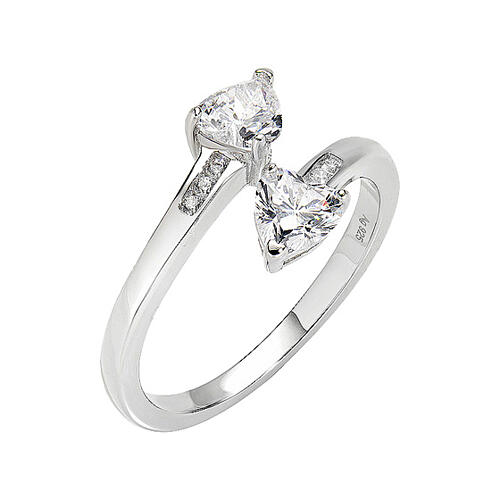 Two Hearts Ring White Zircon AMEN 925 Silver