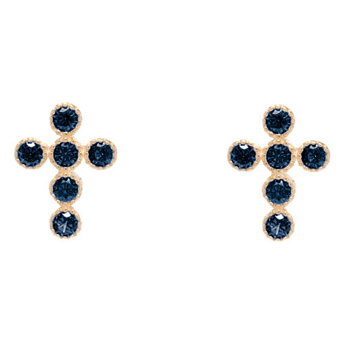 Golden Cross Earrings with Black Zircons by Agios