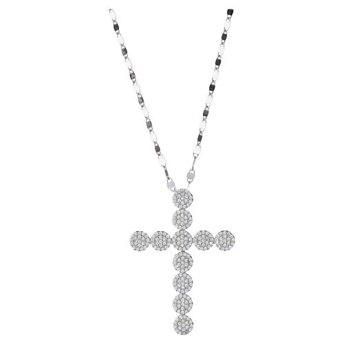 Benedictus Rhodium-Plated Silver Cross Necklace with White Zirconia Circles
