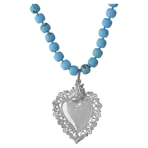 Large Sacred Heart Necklace with Turquoise Beads in 925 Silver, Benedictus