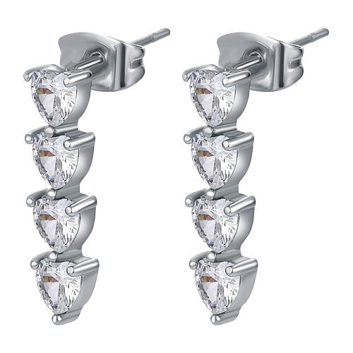 Elegant dangling earrings featuring four white hearts arranged in a sequence, each with a 4 mm diameter, creating a delicate and harmonious effect. It is complete with a protective box, perfect for a special gift. The earring weighs 2 g and has a total length of 2 cm.