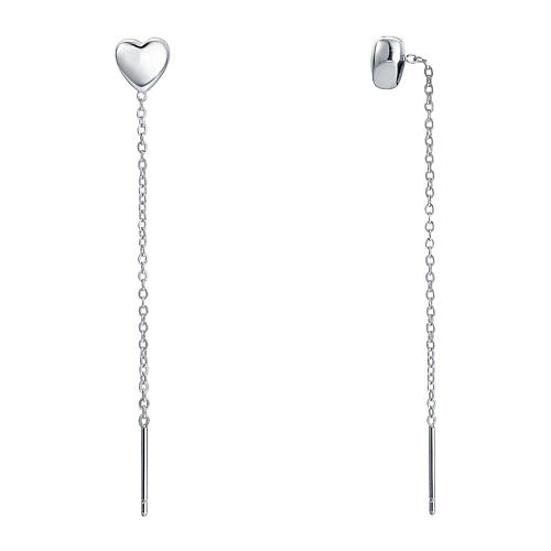 Stainless Steel Sliding Drop Earrings with Domed Heart