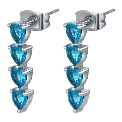 Elegant pendant earrings composed of four turquoise hearts arranged in a sequence, each with a 4 mm diameter, creating a delicate and harmonious effect. Complete with a protective box, perfect for a special gift. Total length of the jewelry is 2 cm with a weight of 2 g.