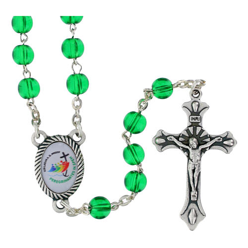 Jubilee 2025 Green Glass Rosary 5mm with St. Peter's Box