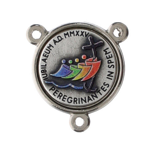 2 cm Zamak Jubilee 2025 Saint Peter centerpiece medal. Silver rosary centerpiece medal with a diameter of 1.6 cm, featuring on one side the Jubilee logo with the motto ''Pilgrims of Hope'', while on the other side it depicts a representation of St. Peter's Square.