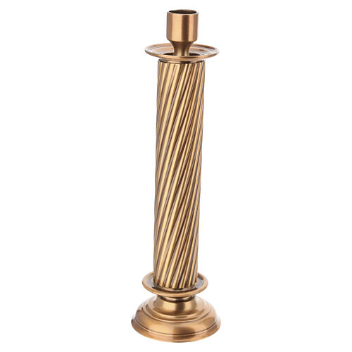 Funerary fluted column candlestick with a bronze finish. This vertical metal column features compact proportions, a circular base, a continuous fluted shaft and an upper seat designed to accommodate candles up to 2 cm in diameter. The uniform surfaces and bronze treatment make it appropriate for funerary and memorial contexts. Manufactured in Italy by foundries specialized in funerary accessories using established production processes, surface protection and hand-finishing to ensure regular surfaces and long-lasting durability. Supplied complete with integrated fixing pins for stable installation. Nominal height 30 cm; actual overall dimensions 27 x 8 cm.