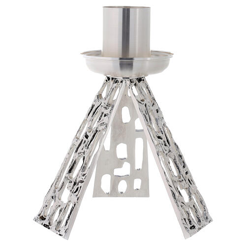 Candle holder in silver cast brass measuring 40cm