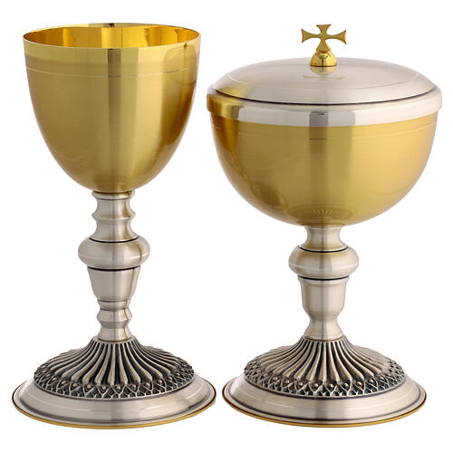 Chalice and ciborium with two-tone metal base and relief 20 cm