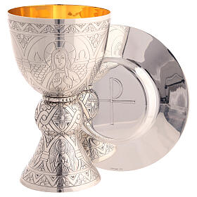 Chalice and paten Molina contemporary style with the four evangelists and cup in 925 sterling silver
