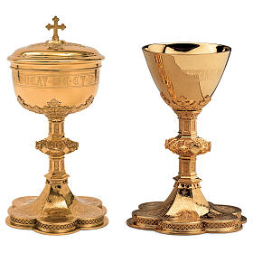 Chalice, ciborium and paten Molina with images of the life of Jesus Christ Gothic style in gold 925 solid sterling silver