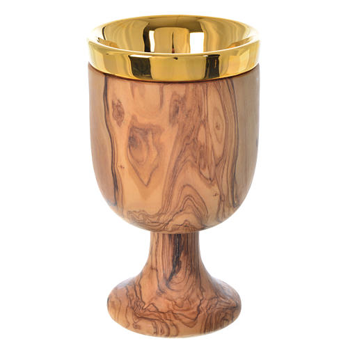 Elegant chalice in Assisi olive wood with cup made of Deruta ceramic.