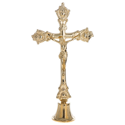 Altar Cross with Golden Brass Body of Christ Relief on Candle Holder Base, 35 cm