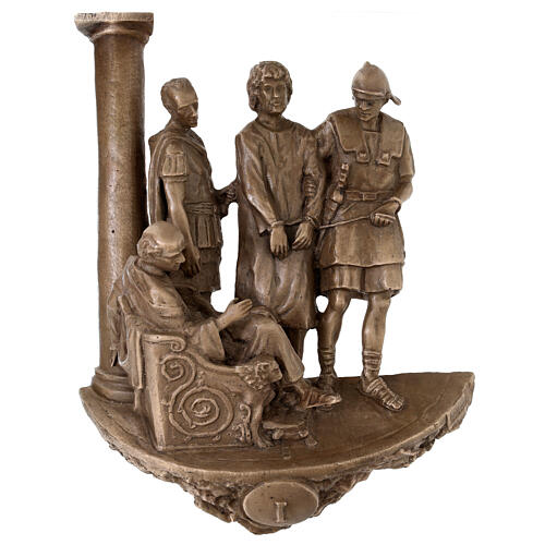 14 Stations of the Cross 34X26 cm Via Crucis made of bronze by an Italian workshop famous for the skills and high-quality it offers.They worked for decades to develop high skills and competences, so as to be able to make liturgical of high manufacturing. Thanks to their skills, they have been able to work for the Vatican and had the honor of forging the bronze stations present in Jerusalem along the road that Christ walked at the time. The Savior was charged with the cross after being whipped an...