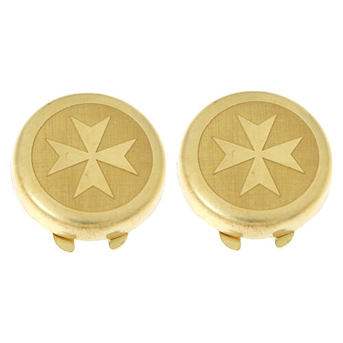 925 Silver Maltese Cross Button Covers Gold-Plated. Pair of Catholic button covers in 925 silver, finely engraved with the Maltese Cross. Handcrafted by an Italian company, they combine quality craftsmanship and timeless symbolism. Nickel-free and carefully packaged in an elegant box, they have a diameter of 1.5 cm. Subtle yet distinctive accessories, ideal for stylishly completing ceremonial attire or official uniforms.