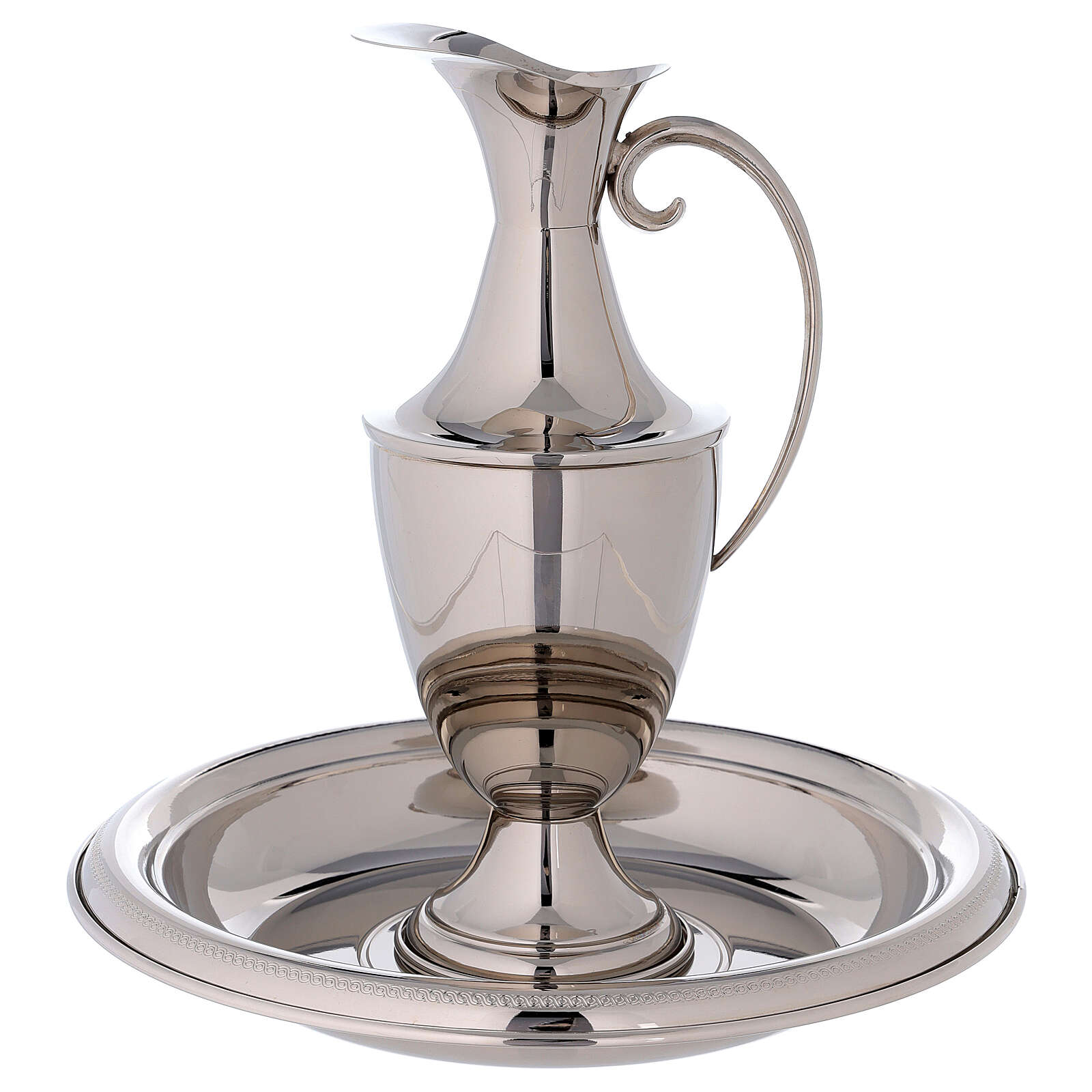 Classic silver plated ewer. Ewer and basin for hand washing ritual, made of silver plated brass in a classic and elegant style.