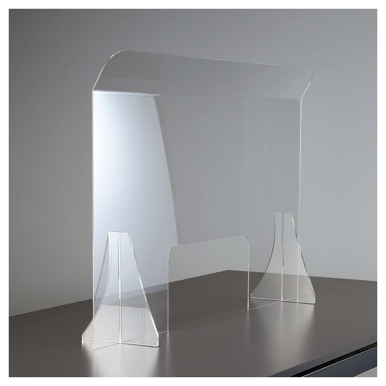 4 mm protective plexiglass shield, 80x100 cm in size, with 30x50 cm window with double-sided tape for application.