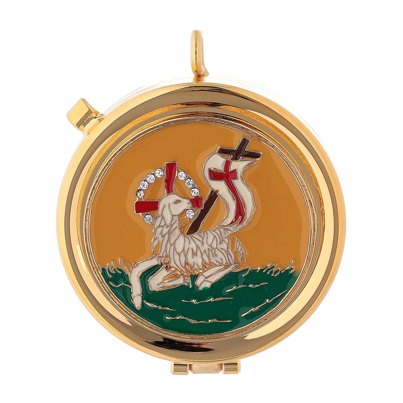 Gold plated pyx with Lamb of God on yellow enamel with crystals 2 in.
