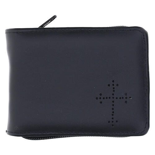 Handmade pyx burse in real leather, lined with red fabric. It includes a metal cross and a small white linen corporal, essential items for the transport of the Eucharist. Suitable for extraordinary ministers or priests delivering communion to the sick. This Catholic burse can accommodate a 5 cm diameter pyx available with code TE007016. Made in Italy.