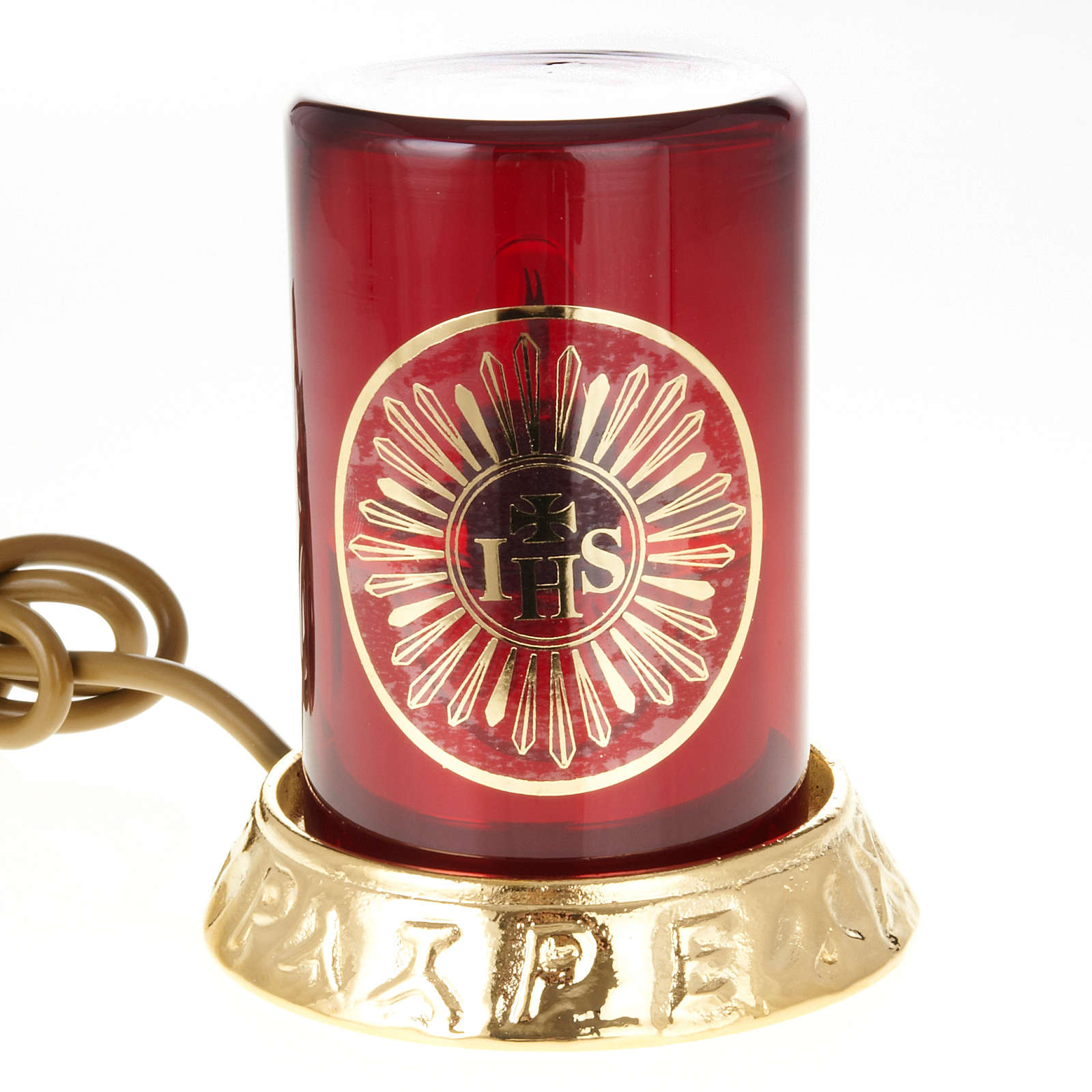 Blessed Sacrament electric lamp with base in brass.