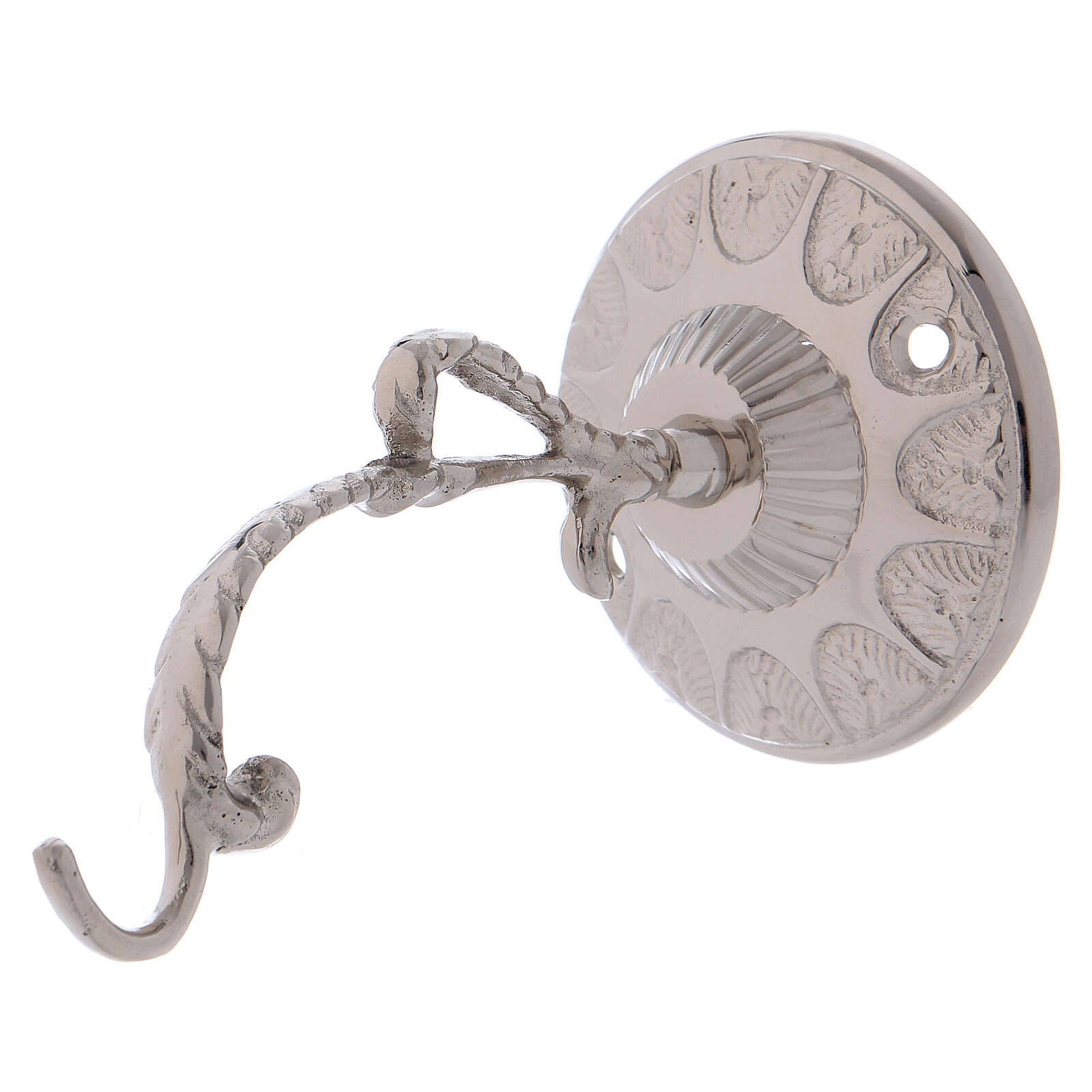 Sanctuary lamp wall bracket in silver-plated brass. Wall bracket made in silver-plated polish brass with decorations, suitable for Sanctuary lamp.