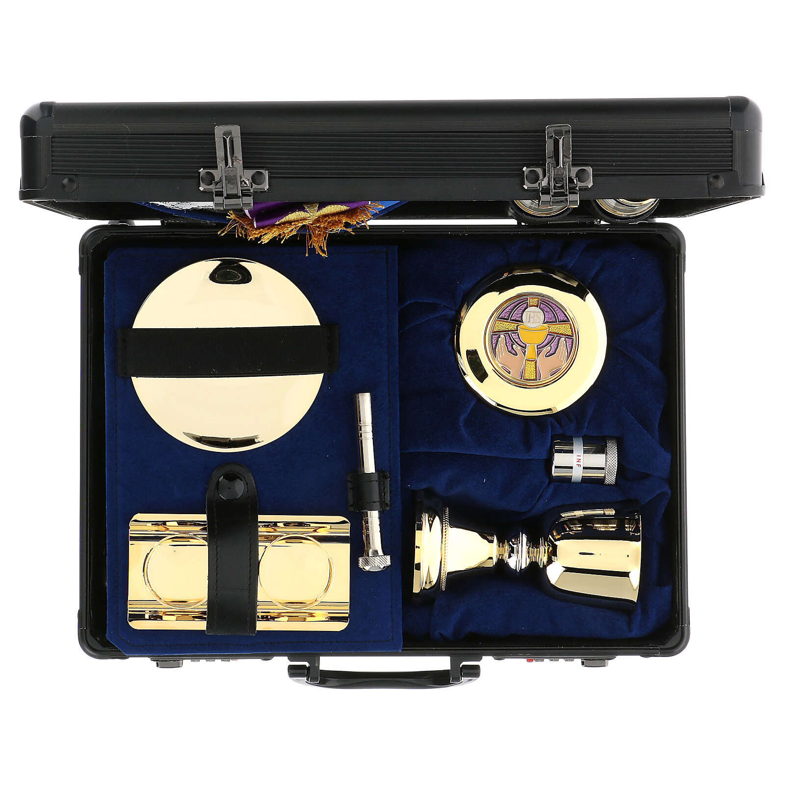Well finished travel mass kit complete with everything needed for mass celebration and viaticum.