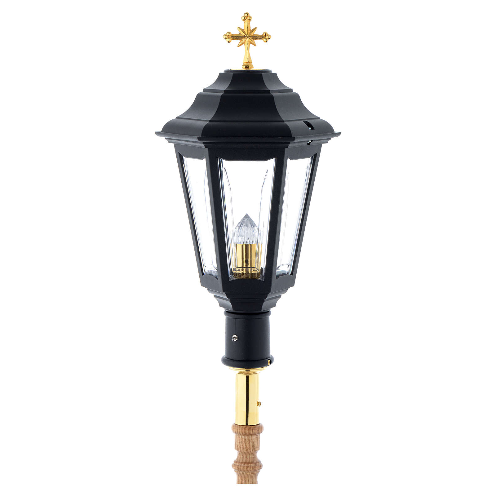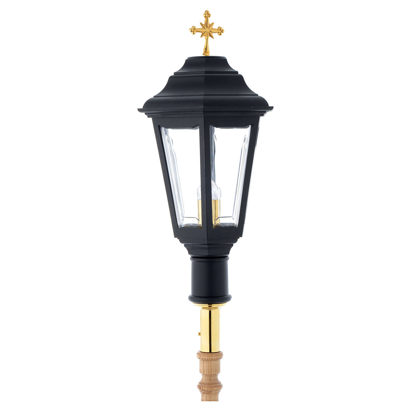 Procession lamp coloured in black with wooden handle sized 2 m.