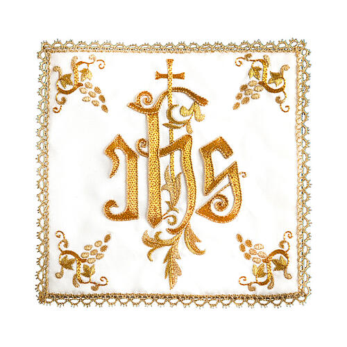 Chalice cover in silk cotton entirely HAND EMBROIDERED, with IHS symbol.