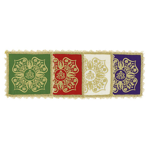 Liturgical chalice pall with IHS embroidery and gold floral motifs