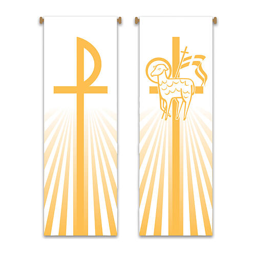 Slabbinck Yellow Banner Set, Christ Monogram and Lamb of God, 300x100 cm
