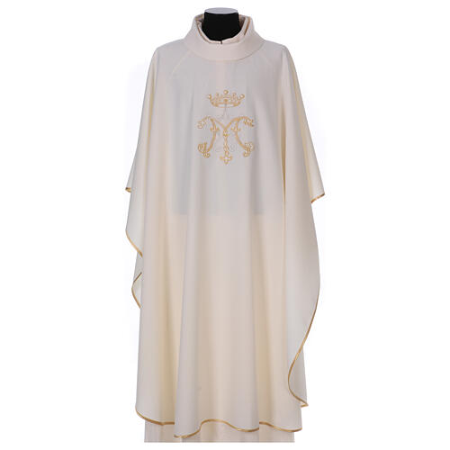 Chausuble with embroidered Marian symbol, 100% polyester.