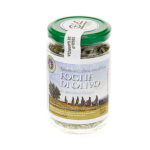 Olive Leaves- Monastery of Siloe. Mixture of olive tree leaves in a glass bottle, ready to be used to prepare the brew. Recommended for hypertension