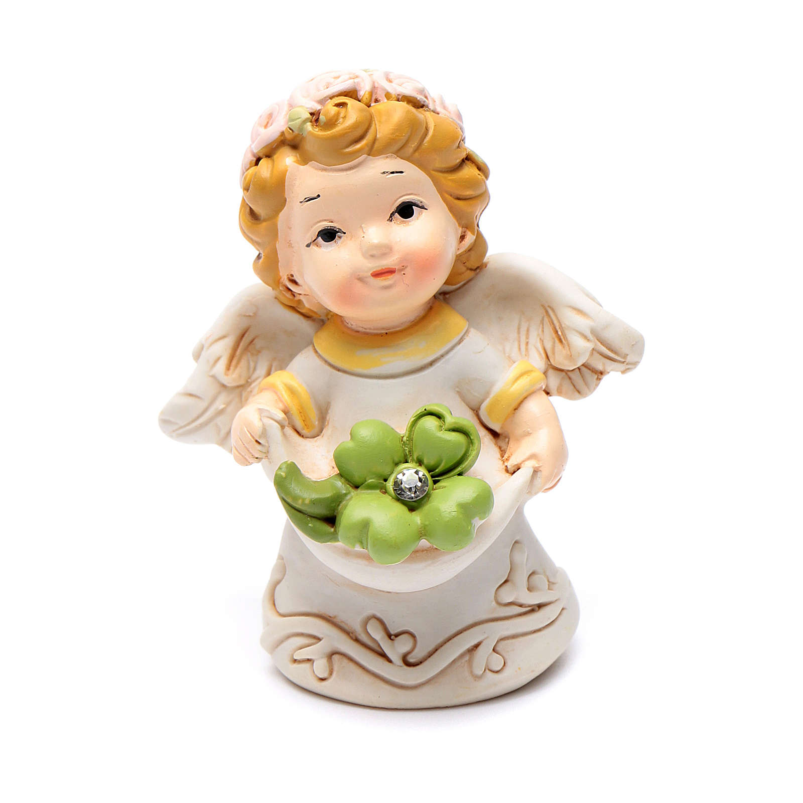 Angel in Resin Holding Four-leaf Clover with Glitter 6 cm
