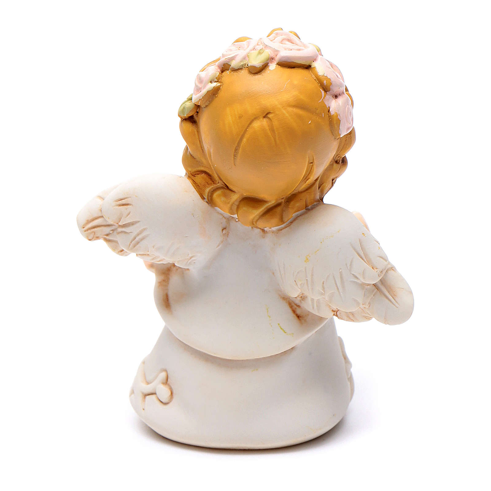 Angel made in resin, painted with unique glittered green flower. Angel statue sized 6 cm.