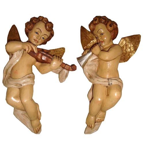 Couple of Angels playing music in painted wood, to hang