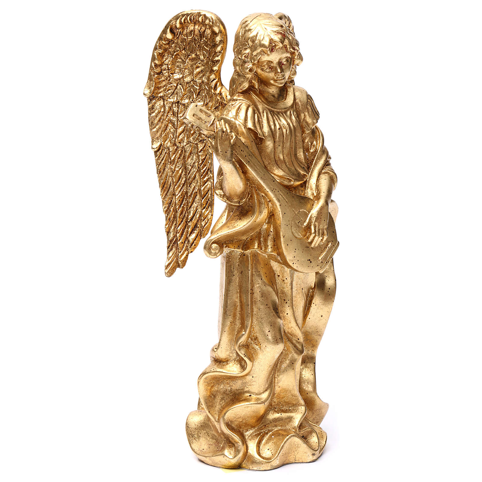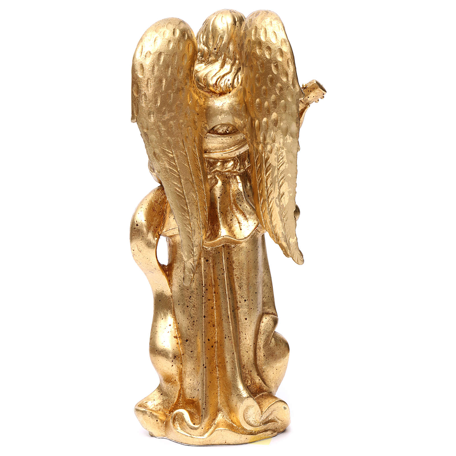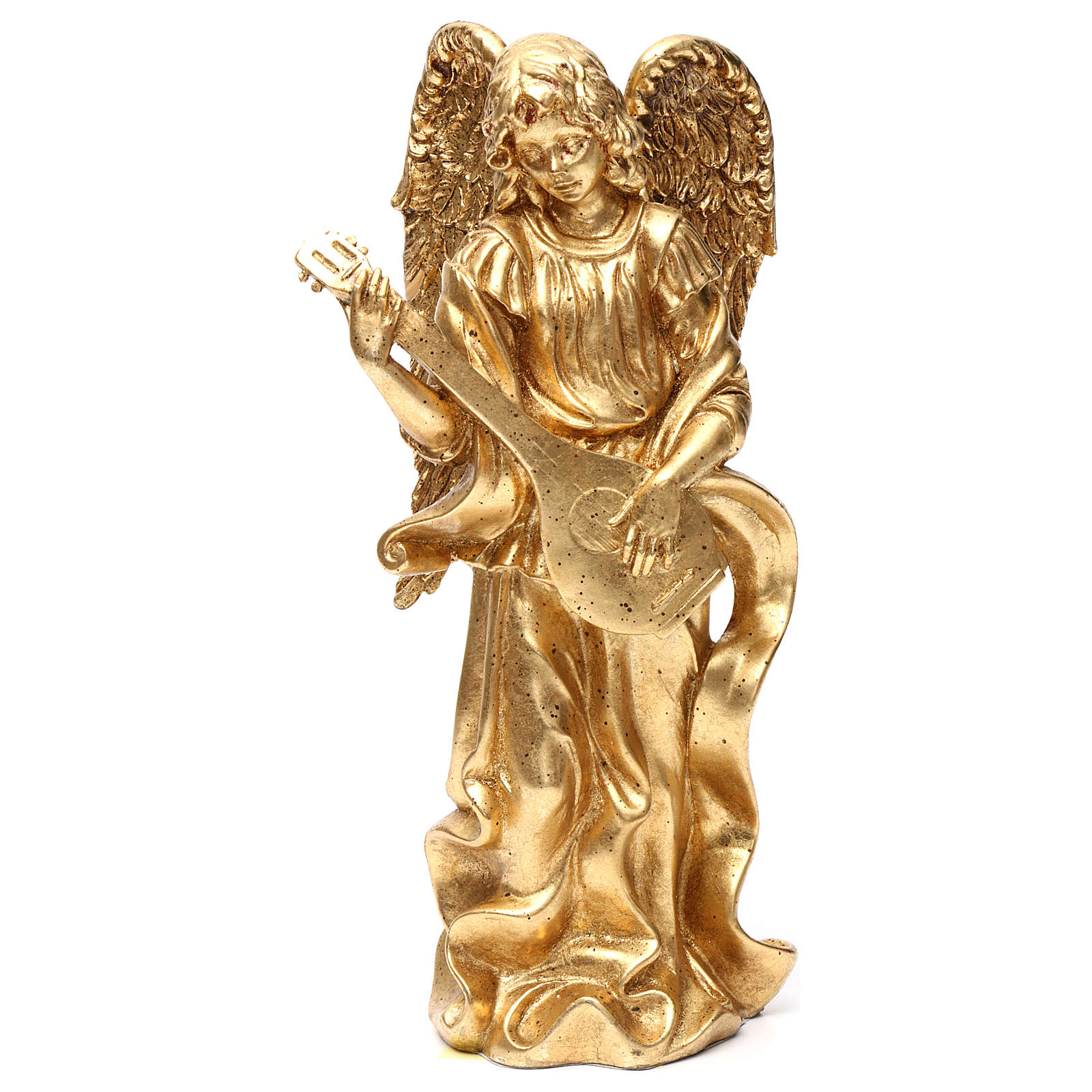 Gilded angel playing the mandolin 35 cm. Angel statue hand painted in Italy with an aged finish.