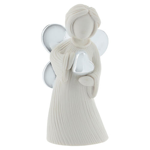 White angel figurine with heart and silver wings, 12 cm