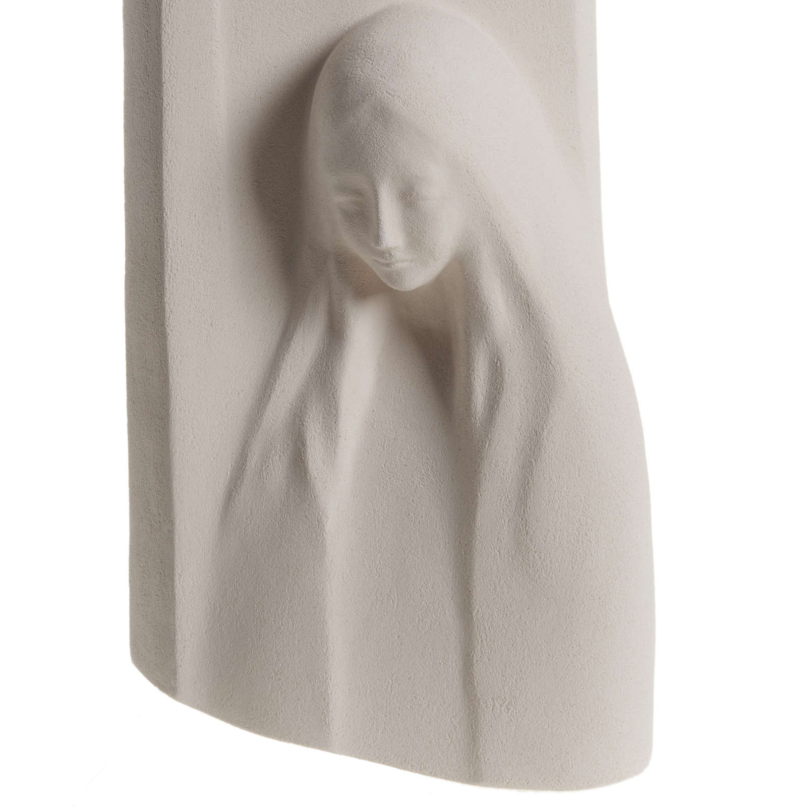 Bas-relief in fireclay reproducing Virgin Mary peace. This statue is firstly hand worked, then baked at more than 1000° degrees and hand finished.