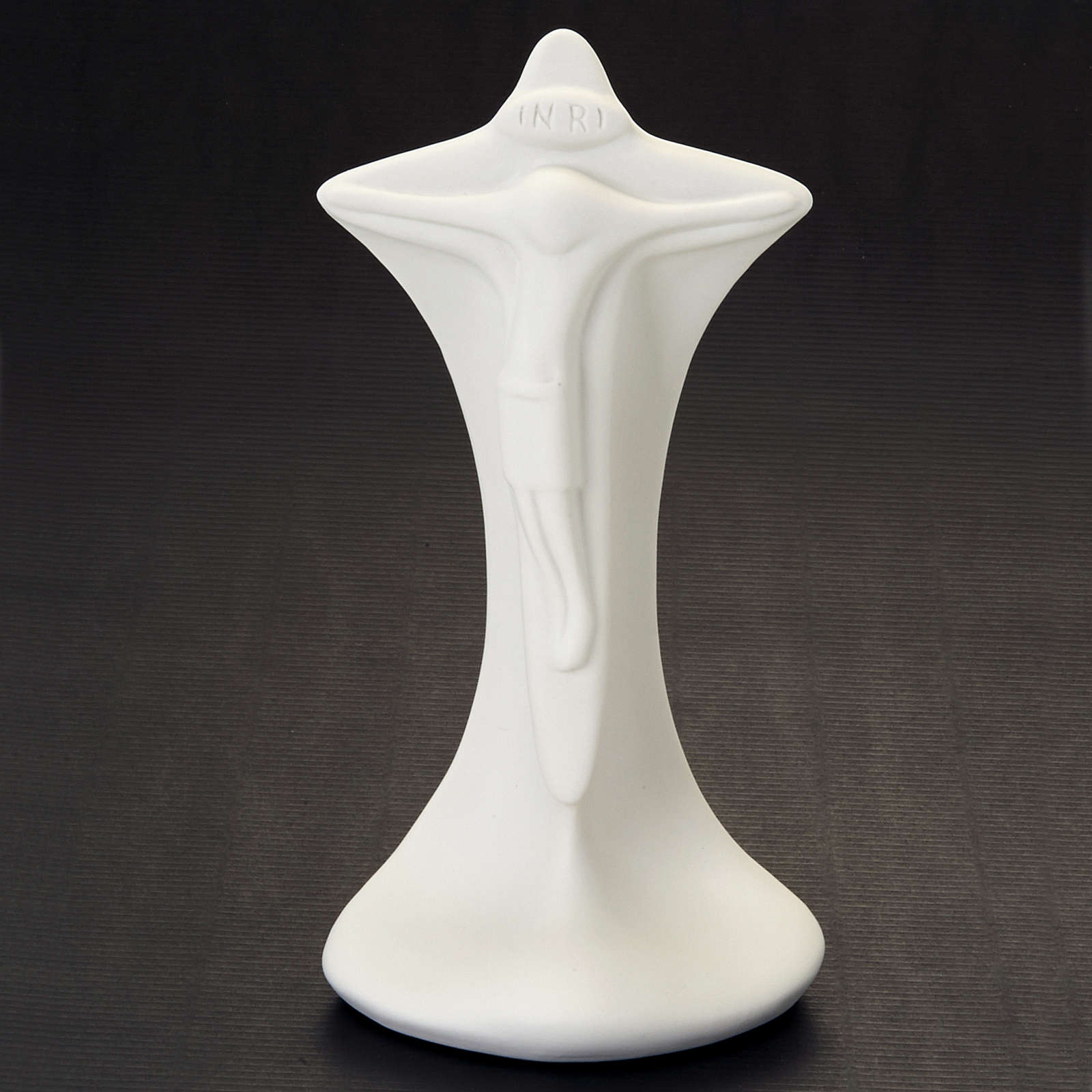 A porcelain crucifix suitable to be placed on a table, a work of art by the sculptor Francesco Pinton.