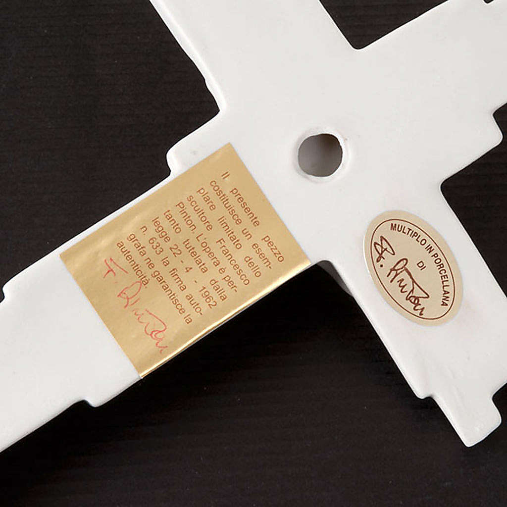 Stylized crucifix in white porcelain.This hanging cross depicts the Resurrection of Jesus Christ.