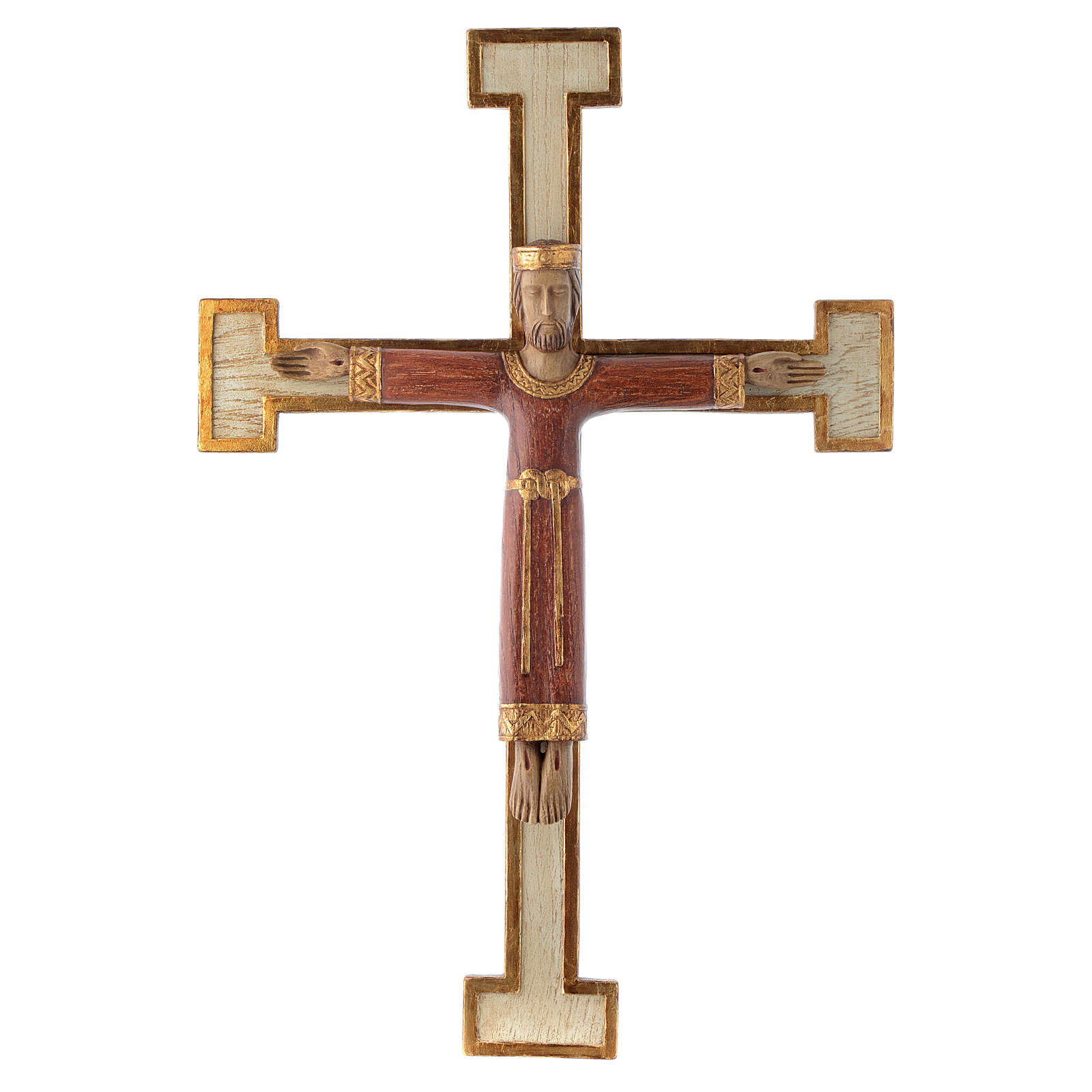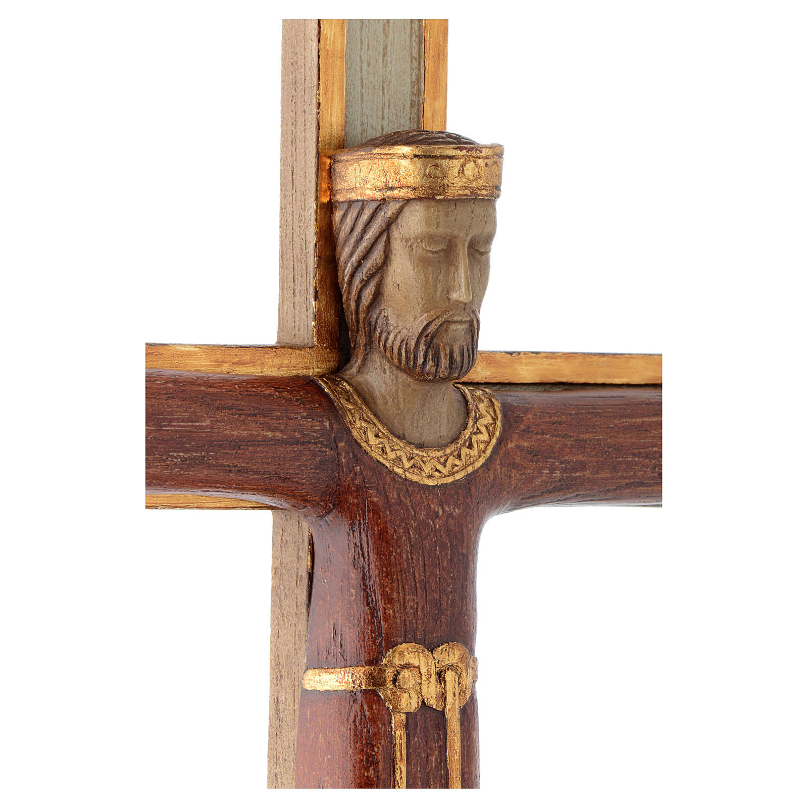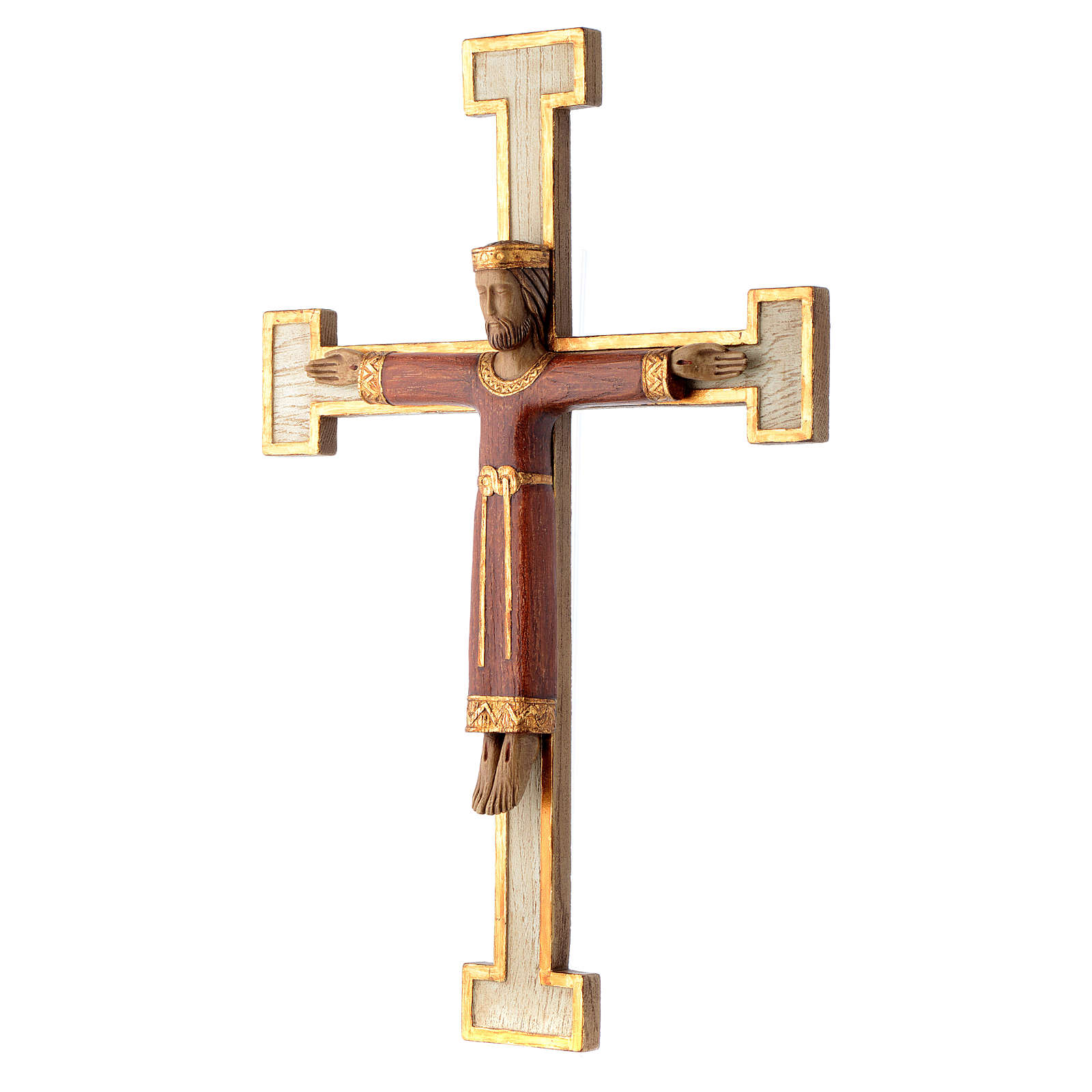 Jesus Christ, Priest and King crucifix Bethlehem nuns. Majestic crucifix representing Jesus Christ, Priest and King, this statue is made of pyrenean stone and it is hand-painted by the nuns of the monastic family of Bethleem.