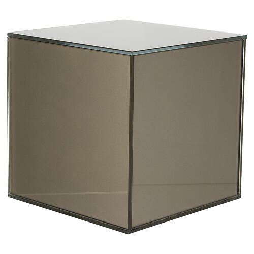Bronze glass cremation urn, 20 cm. A cremation urn designed for ashes, made of glass with a bronze finish and a capacity of 4.5 liters. The piece features a simple cubic shape with smooth surfaces and defined edges, without decorative embellishments. Technical equipment includes a dedicated internal aluminum container for the ashes. Suitable for both cemetery and domestic settings, the funeral urn ensures stable placement and orderly management of its contents. Manufactured in Italy by a specialized artistic foundry with manual finishing processes, Made in Italy. Overall dimensions: 21 x 21 x 21 cm. The 4.5-liter capacity is suitable for a single adult of average build.