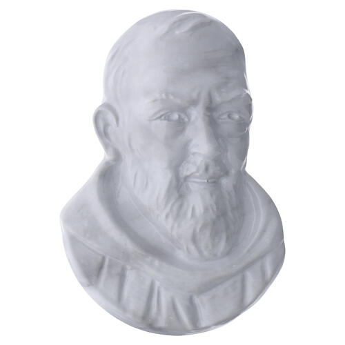 Bronze-effect wall cemetery plaque of St. Padre Pio for mounting, 14x10 cm. Grave wall plaque depicting St. Padre Pio, cast in brass with a bronze finish. The plaque features a high-relief bust with finely modelled facial features, beard and friar's habit, and a compact profile suitable for application to vertical surfaces. It is prepared for direct fixing to headstones, chapels, niches and monuments using rear anchoring systems compatible with stone or masonry. Designed for external cemetery installation, the item is engineered to ensure long-term stability and preservation. Produced in Italy by an artistic foundry specialized in bronze casting for sacred sculptures and funerary artifacts, with subsequent manual finishing.